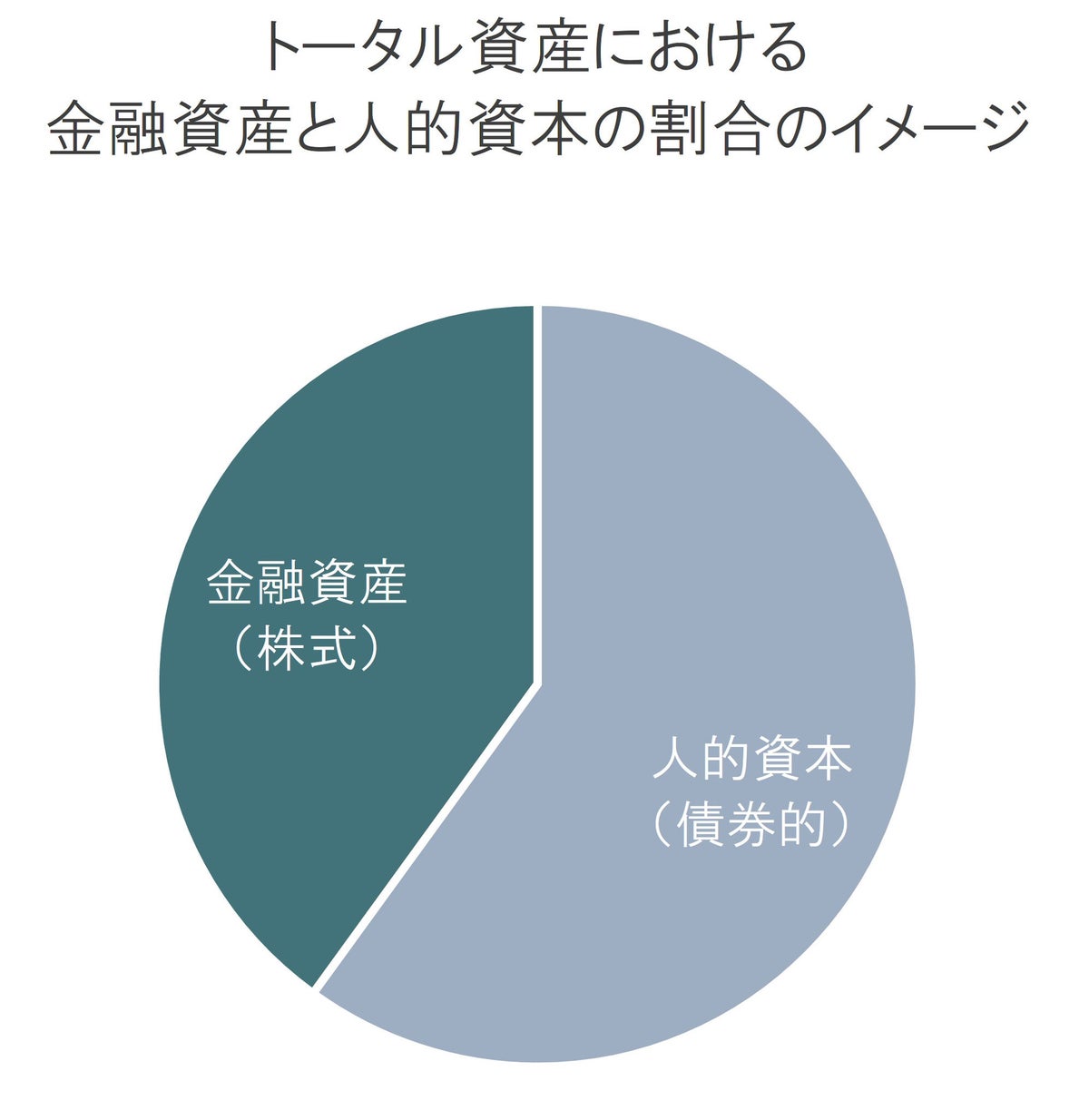 Sさんのポートフォリオが株式中心の構成である点は、私のポートフォリオと重なる部分です。もちろん安定的なポートフォリオという観点で見ると、投資先を債券や金といった資産に広げ、より分散化させるべきです。しかし、「人的資本と金融資産を合計したトータル資産」という概念を用いるのであれば、株式中心のポートフォリオも許容できるという考え方もありますので、ご紹介させていただきます。