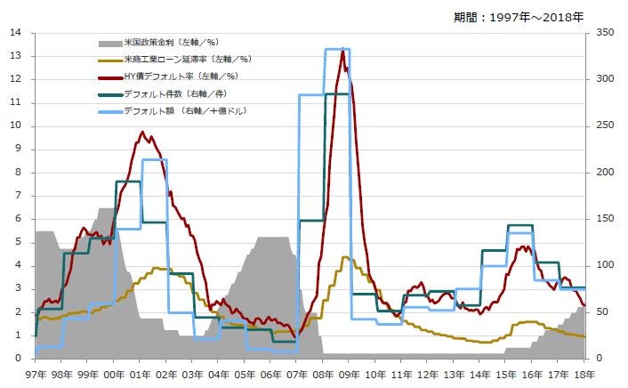 - 過去にデフォルトが発生した時の状況を見ると、政策金利水準が高水準に達した後でデフォルトが増加していることが確認できます。