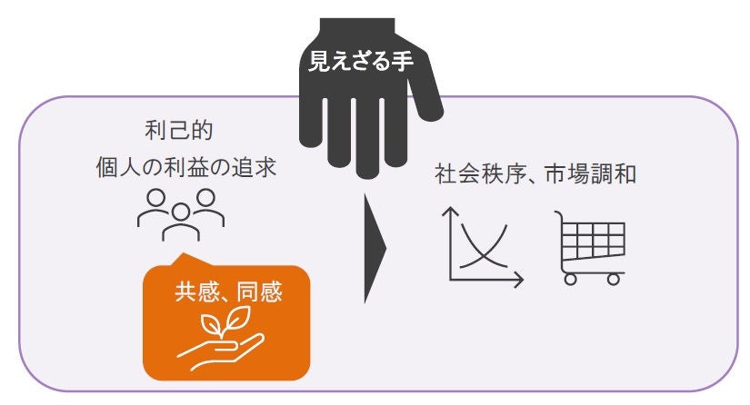 このように、国家が管理介入せずとも、見えざる手によって秩序ある調和のとれた経済活動や市場形成ができると考え、また、生産力向上のための資本投下や資本形成を促す考え方は自由放任主義と呼ばれました。ただし、あくまで自由放任主義は人の内面に宿る共感力や同感力が前提としてあることを理解する必要があります。