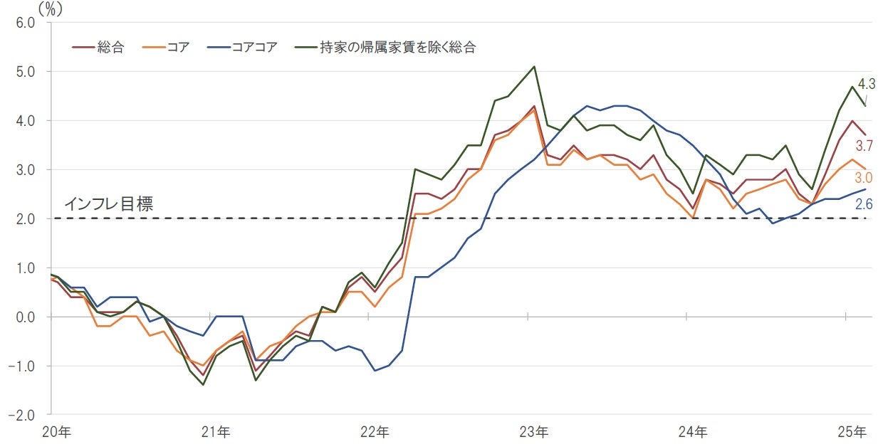 図表1:日本のCPIの推移(前年同月比、2020年1月~2025年2月)
