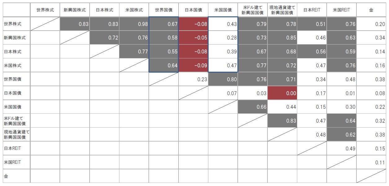 図表1:相関係数が示す資産間の値動きの違い