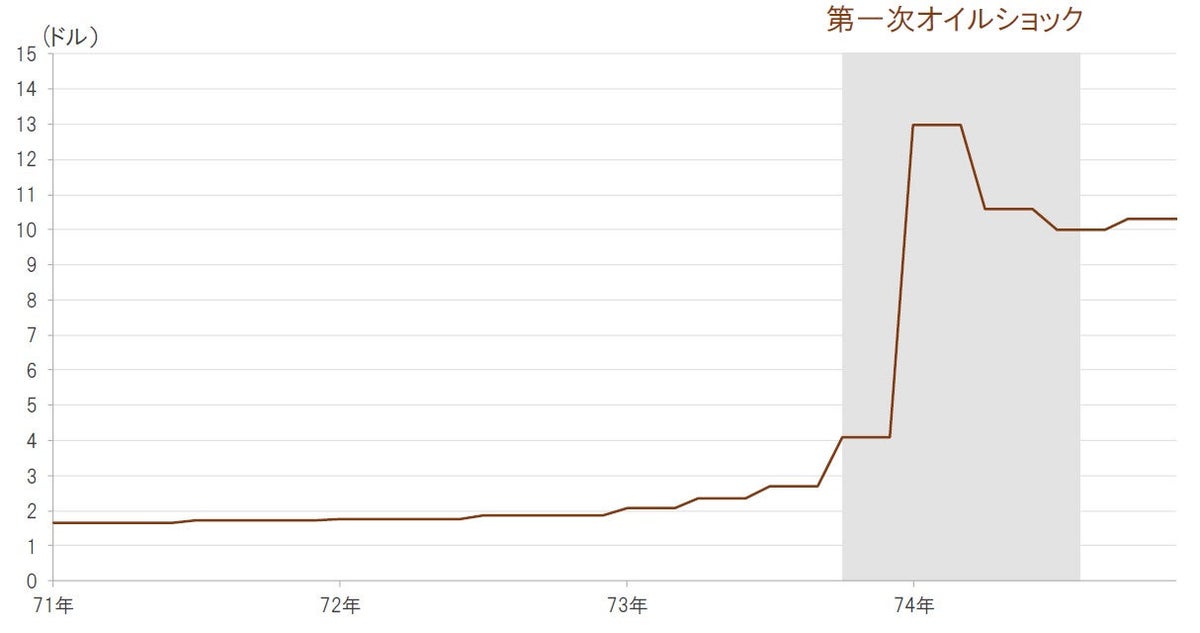 第一次オイルショックにより原油価格が約4倍近く高騰したことで、世界は激しいインフレに直面し、世界経済は悪化しました。