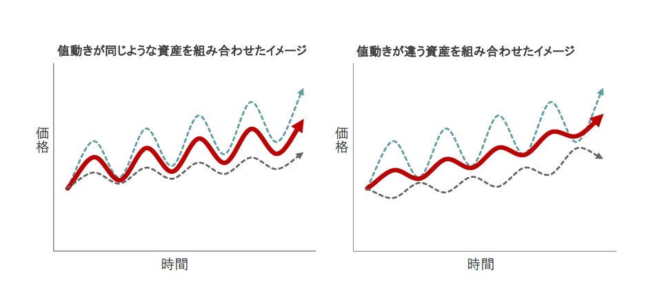 図表1:分散投資による投資資産全体の値動きのイメージ