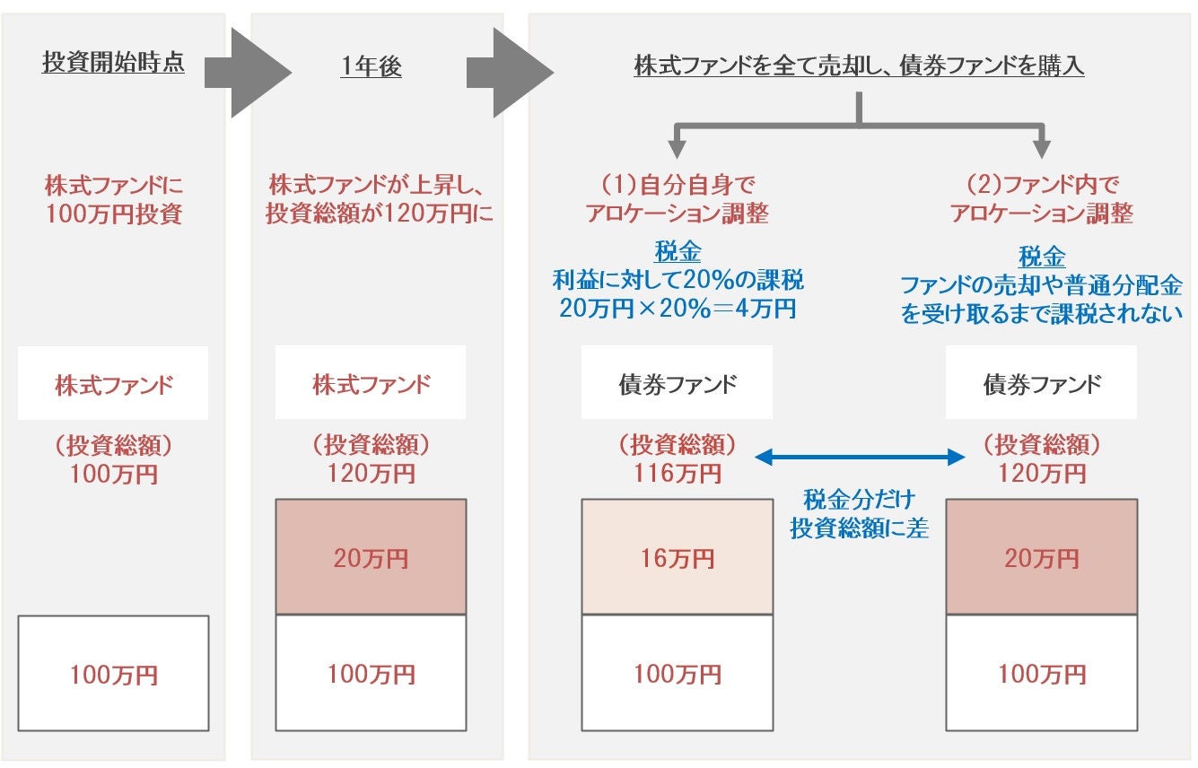 図表1 :アロケーション調整を自分で行った場合とファンド内で行った場合のイメージ