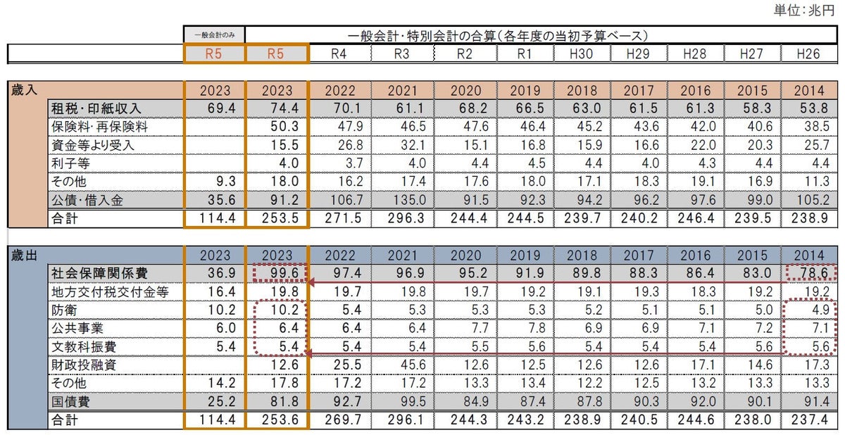 図表2:日本の財政収支推移(期間:2014年度~2023年度)