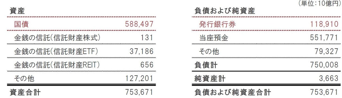 図表1:日本銀行のバランスシート(2024年6月末時点)