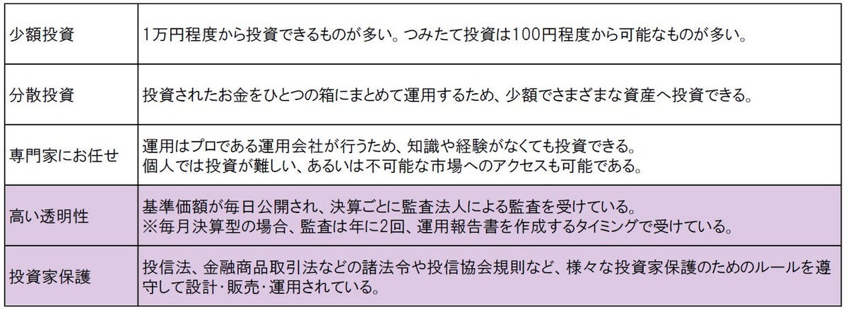 NISAで投資信託を活用するその他のメリットとして、透明性が高い点や投資家保護のためのルールが整備されている点があげられます。