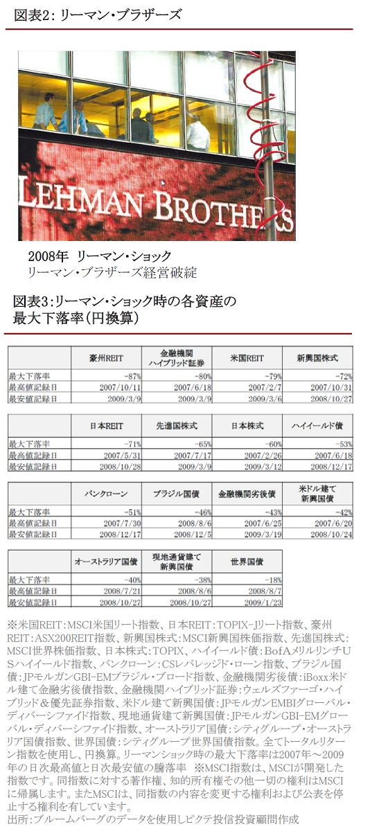 サブプライムローン問題に端を発した2008年のリーマン・ショック後、翌2009年にかけて世界の金融市場は大きく調整しました。リスクに対して感覚の麻痺していた資金が急速に逃げ、一気にリスクオフが進み、流動性リスクが顕在化しました。流動性の低い資産の中には売買ができなくなったものもありました。
