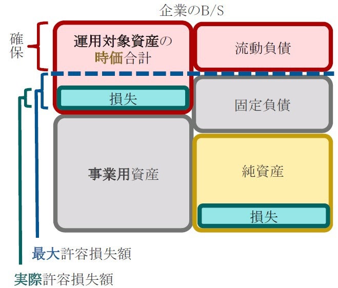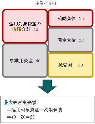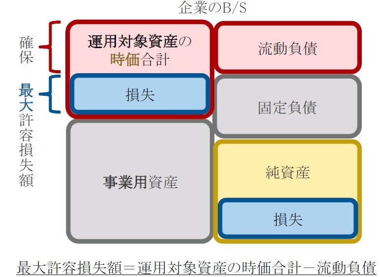 貸借対照表(B/S)上の区別をしたうえで、運用対象資産を時価評価したときの最大許容損失額を考えます。