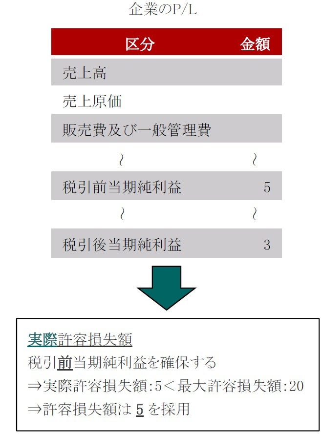ここまでの解説を踏まえ、最大許容損失額の計算例(図表3)と、実際許容損失額の計算例(図表4)を掲載しました。実際のコンサルティングをイメージしながらご確認ください。