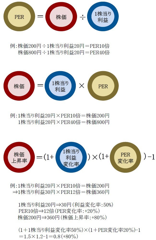 株式投資のキャピタルゲインを産み出す株価の変動は、1株当り利益の変化とPERの変化に分けて考えることができます。今回は、株価と1株当り利益とPERの関係について解説いたします。