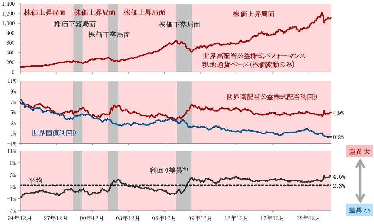 注1:利回り差異=世界高配当公益株式配当利回り-世界国債利回り