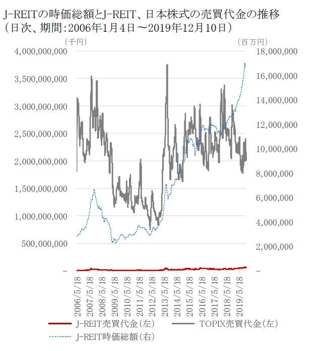 J-REIT:東証REIT指数、日本株式:東証株価指数