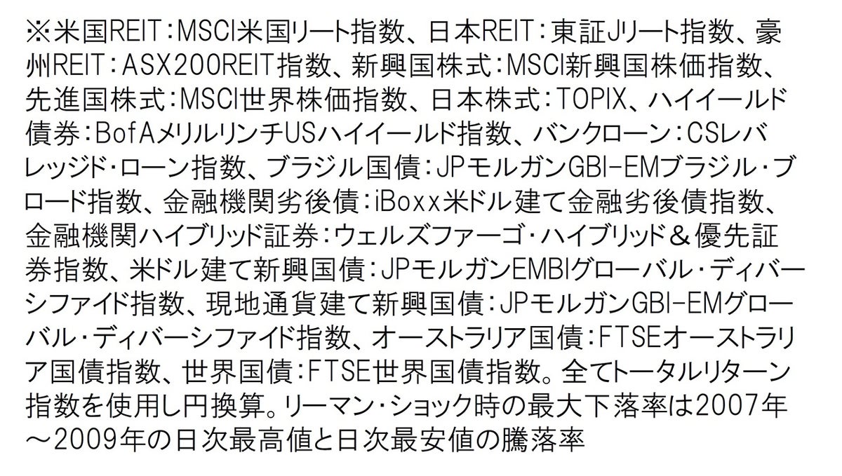 図表2:主要資産のリスク/リターン(期間:2003年6月~2020年12月)