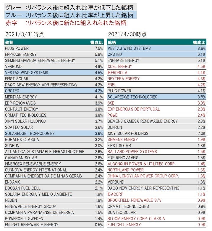 図表4:S&P Global Clean Energy IndexをベンチマークとするETFにおける構成比上位30銘柄の推移