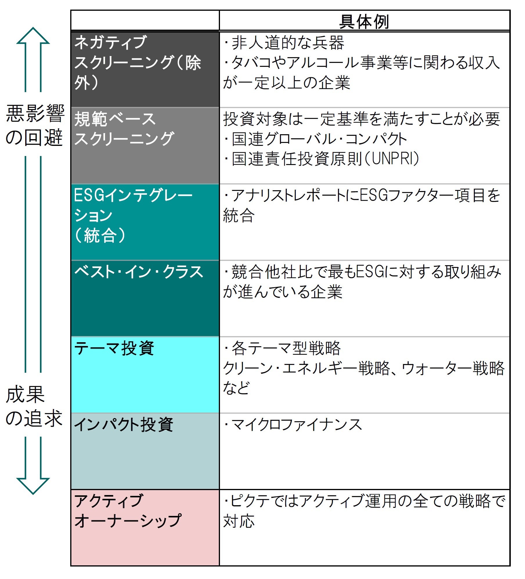 図表1:ESG投資の各戦略の具体例
