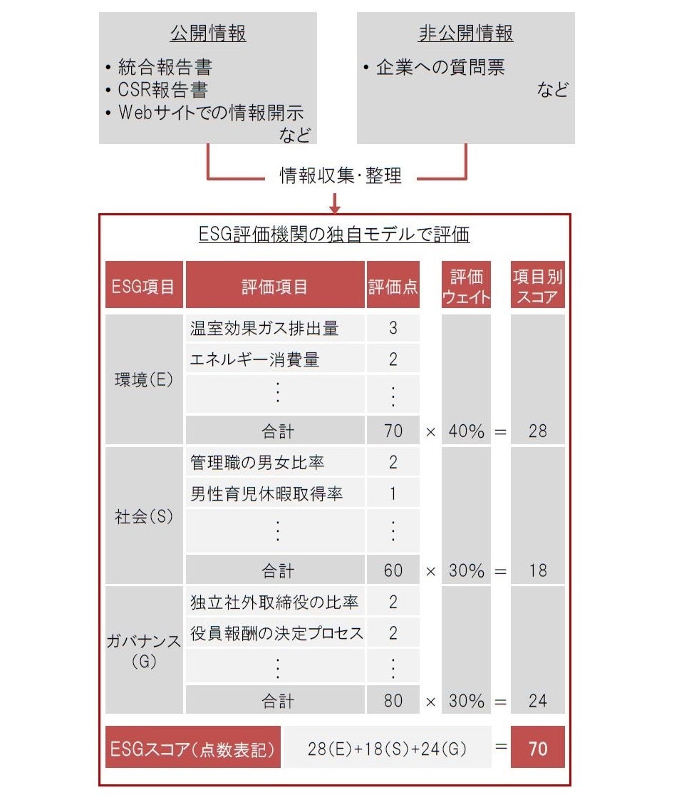 ESGスコアとは、投資対象企業のESGパフォーマンス※やリスクなどを測定し、その評価を数値や記号で定量的に表現することで他の企業との比較を容易にする仕組みで、ESG格付やESGレーティングなどと呼ばれることもあります。これにより、投資家が企業のESGパフォーマンスを容易に把握し評価することが可能になっており、ESG投資における意思決定プロセスなどに活用されています。ESGスコアを提供するESG評価機関は信用格付機関やインデックス・プロバイダー、金融情報サービス企業など様々で、近年ではESGに対する注目の高まりなどを背景に買収や合併などの再編が進んできました。