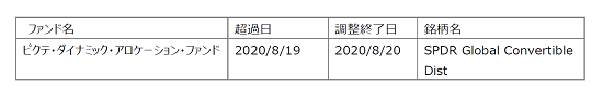 さて、弊社が設定・運用しております下記ファンドは、その組入投資信託証券をルックスルーして得られた有価証券等のエクスポージャーの額が、一般社団法人投資信託協会の定める「投資信託等の運用に関する規則」第17条の2で規定する、信用リスク集中回避のための投資制限を超過したため、同条の規定にしたがって基準比率以内となるよう調整を行い、それを完了いたしました。同協会の定める「投資信託及び投資法人に係る運用報告書等に関する規則」第19条の2の規定に基づき、ここにお知らせいたします。