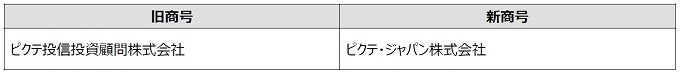 変更⽬的:グローバル規模で幅広く資産運用業を展開する、ピクテ・グループの日本における拠点であることを明確にするとともに、従来の投信業務、投資顧問業務から、将来の新しい資産運用業の在り方を追求する社名に変更し、また投資家の皆さまにも、より親しみを感じていただけるよう、社名を変更するものです。