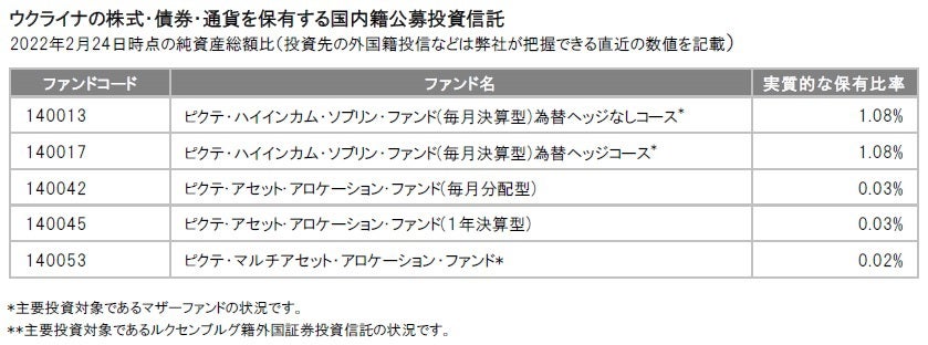 - 弊社ファンドにおける「ロシアおよびウクライナの株式・債券・通貨」の保有状況について