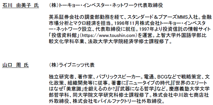 社外有識者メンバー拡充、石川由美子氏、山口周氏を新たに招致