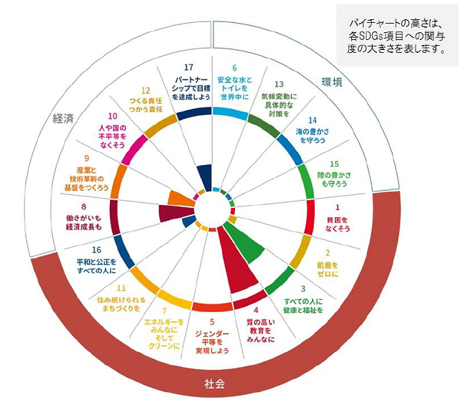 2021年9月末時点では、7つのSDGs項目(2,3,4,8,9,16,17)に関連しており、特に関わりが強い目標は、「3.すべての人に健康と福祉を」や、「4.質の高い教育をみんなに」です。