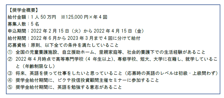 - ピクテ社会貢献活動 ピクテ×ブリッジフォースマイル グローバル・タレント・プログラム 児童養護施設等出身者への給付型奨学金募集開始 ~英語を活用してグローバルに活躍することを夢見る学生を支援~