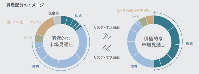 各資産のリターンとリスクの見通しを基に、市場環境にあわせて機動的に資産配分を変更