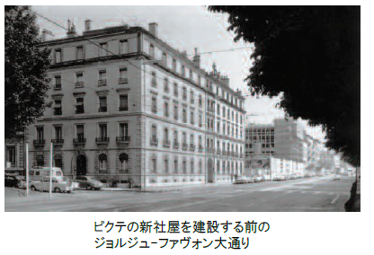 第二次世界大戦終戦までのピクテの顧客層は、主にスイスとヨーロッパの個人顧客でしたが、その後、世界中へと広がっていきます。ディデイ通りのオフィスは次第に手狭になり、パートナー・コミッティーでは、ジョルジュ- ファヴォン(Georges-Favon)大通りに新しいビルを建設し、すべての業務を1ヵ所に集中させることが決定されました。建設開始から3年半後の1975年に移転した新オフィスはクラシックな外観と近代的なインフラを融合させた建物でした。