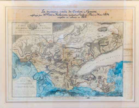 1814年のパリ会議でピクテ・ド・ロシュモンが手書きで注釈を加え使用したジュネーブ周辺地図