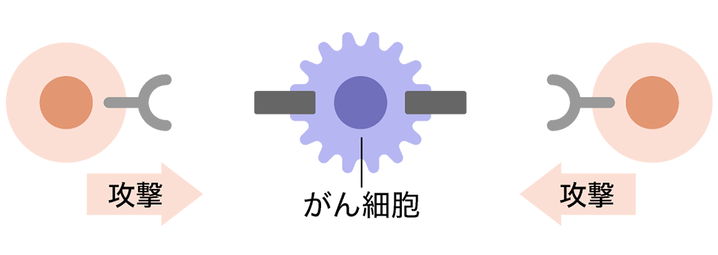 1. がん細胞がT細胞(免疫機能の司令塔となる重要な細胞)と結合
