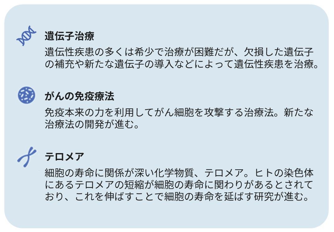 バイオテクノロジーを活用した最先端医療は、寿命を延ばすだけではなく、健康寿命(人が健康に生活できる期間)を延ばすことも期待されています。