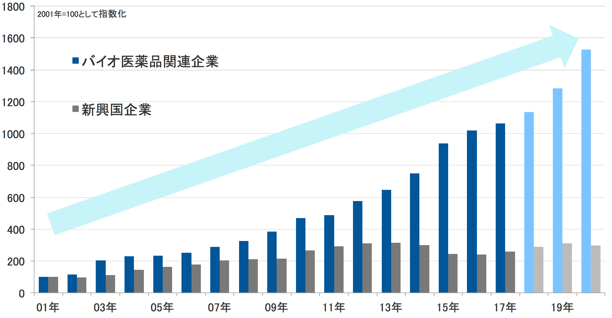 バイオ医薬品企業は画期的な新薬の開発などによって大きく売上高を伸ばしており、その成長力は、高い成長が期待される新興国企業を上回っています。