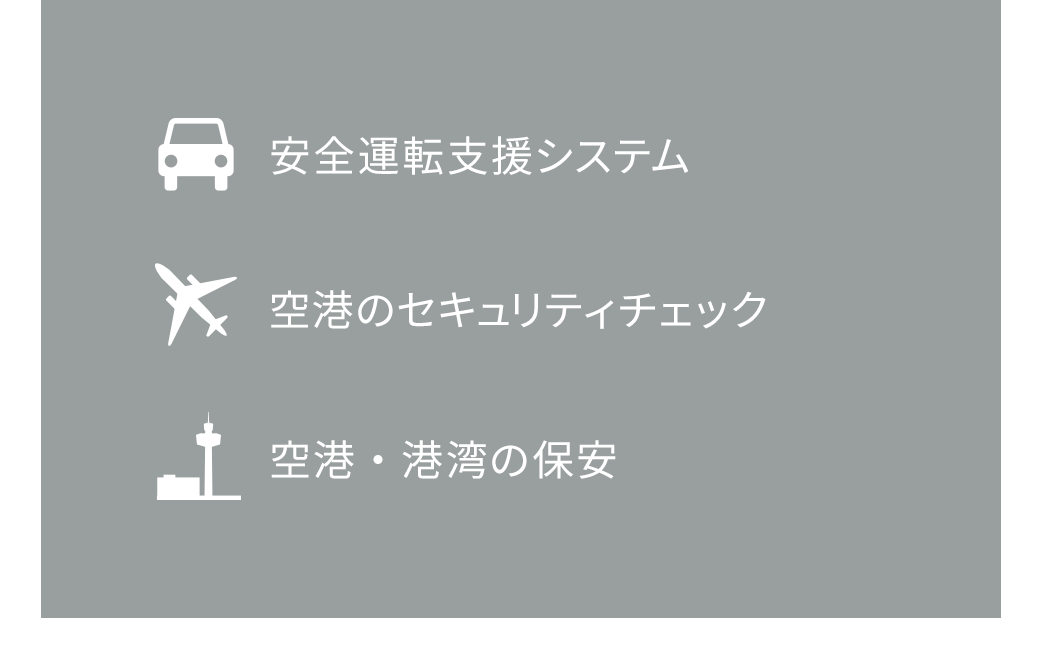 グローバル化を背景に人やモノの移動が活発化する中、空港や港湾などのインフラ施設に高い安全性が求められています。また、事故を未然に防ぐための自動車の運転支援システムの開発など、技術革新と成長が見込まれています。