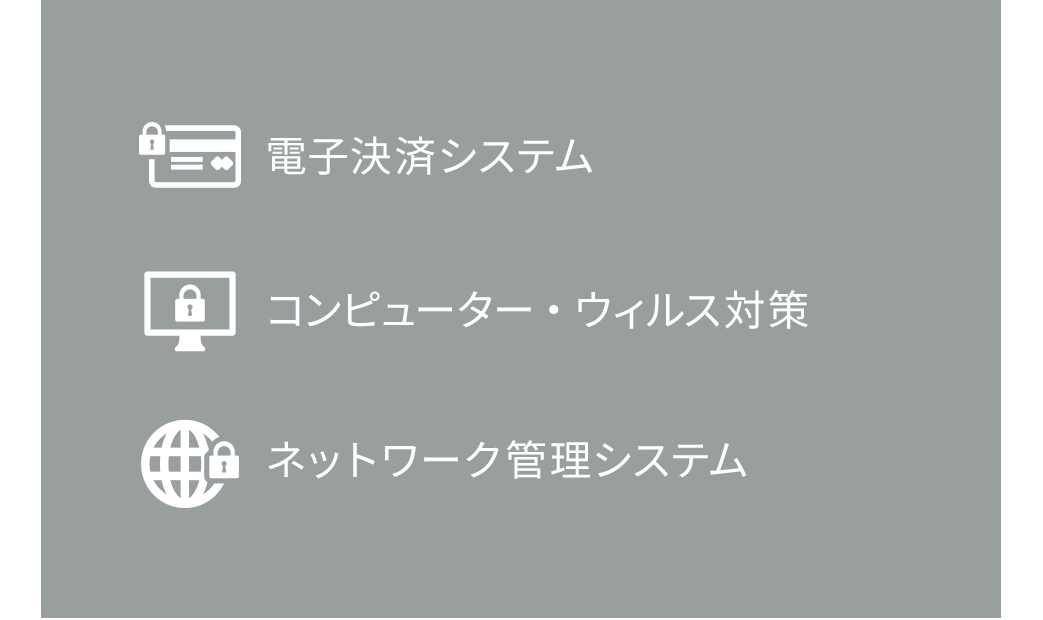 デジタル化が加速し、ネットショッピングや電子決済(キャッシュレス決済)を利用する機会が増えています。こうした便利なサービスを安心して利用できるためのサイバー・セキュリティなどのへのニーズが高まっています。