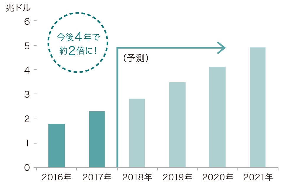 世界のeコマース(電子商取引)市場の推移