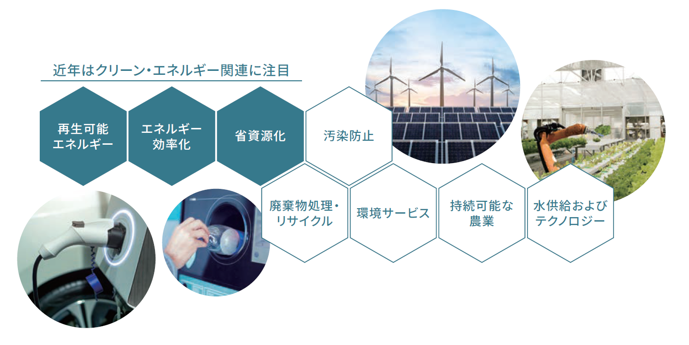 ※上記はあくまでもイメージであり、実際の状況と異なる場合があります。実際の投資にあたっては、上記の環境関連分野すべてに投資するわけではなく、またこれら以外の分野に投資することもあります。