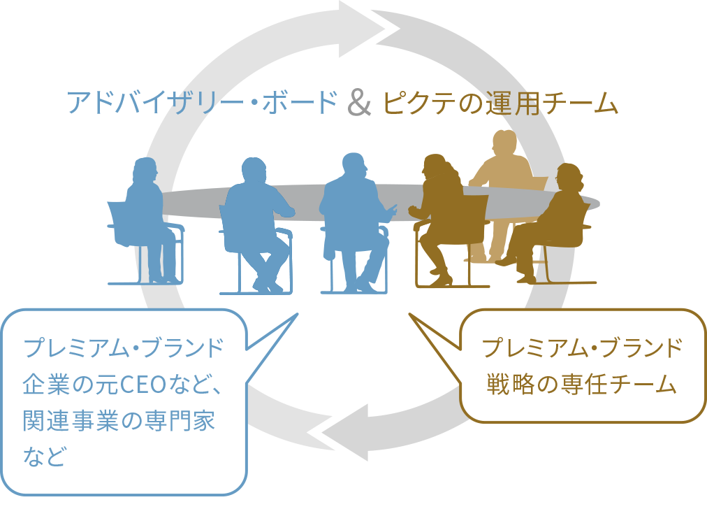 運用チームは、プレミアム・ブランド企業の元CEOなど金融業界ではない中立的な立場の専門家を招致(アドバイザリー・ボード)し、定期的な意見交換を行います。これにより、最新技術の動向やトレンドの変化をいち早く捉え、これから成長する企業の発掘に生かしています。