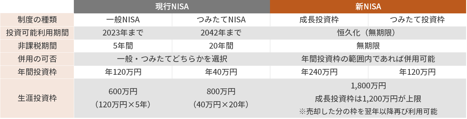現行のNISAは投資可能期間と非課税期間が有期限となっていますが、2024年からは投資可能期間も非課税期間も無期限となり、長期の資産形成という観点からも安心して制度を利用できるようになります。