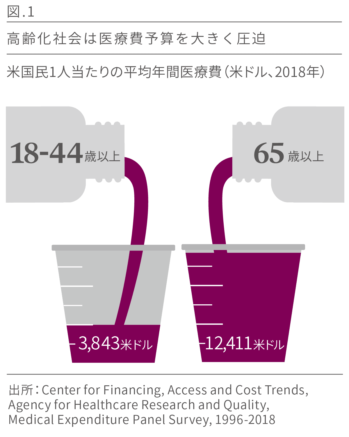 高齢化注は、世界的事象になってきています。現在もっとも顕著なのはイタリア、日本、ポルトガルやスウェーデンといった先進国ですが、65歳以上の高齢者が人口に占める割合は、ほぼすべての国で増加しています(1)。循環器疾患や糖尿病といった加齢が原因の病や生活習慣病の患者数増加は、医療のための国家予算が逼迫することに繋がります(図1参照)。