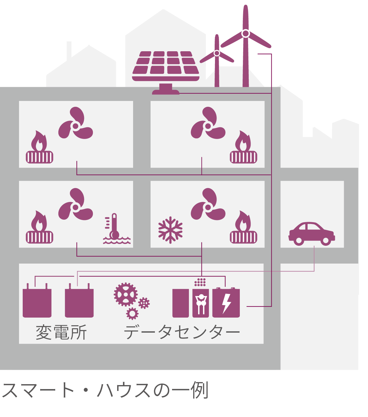 都市部の建物は、二酸化炭素排出の約70%(8)を占めています。2050年(9)までに世界の街や都会の人口割合が今日の50%から70%に増加する見込みである今、これは懸念材料です。都市や建物のスマート化を行い、エネルギー消費を最適化することにより都心はよりエネルギー効率の高い未来を築くという重要な役割を果たすことができます。