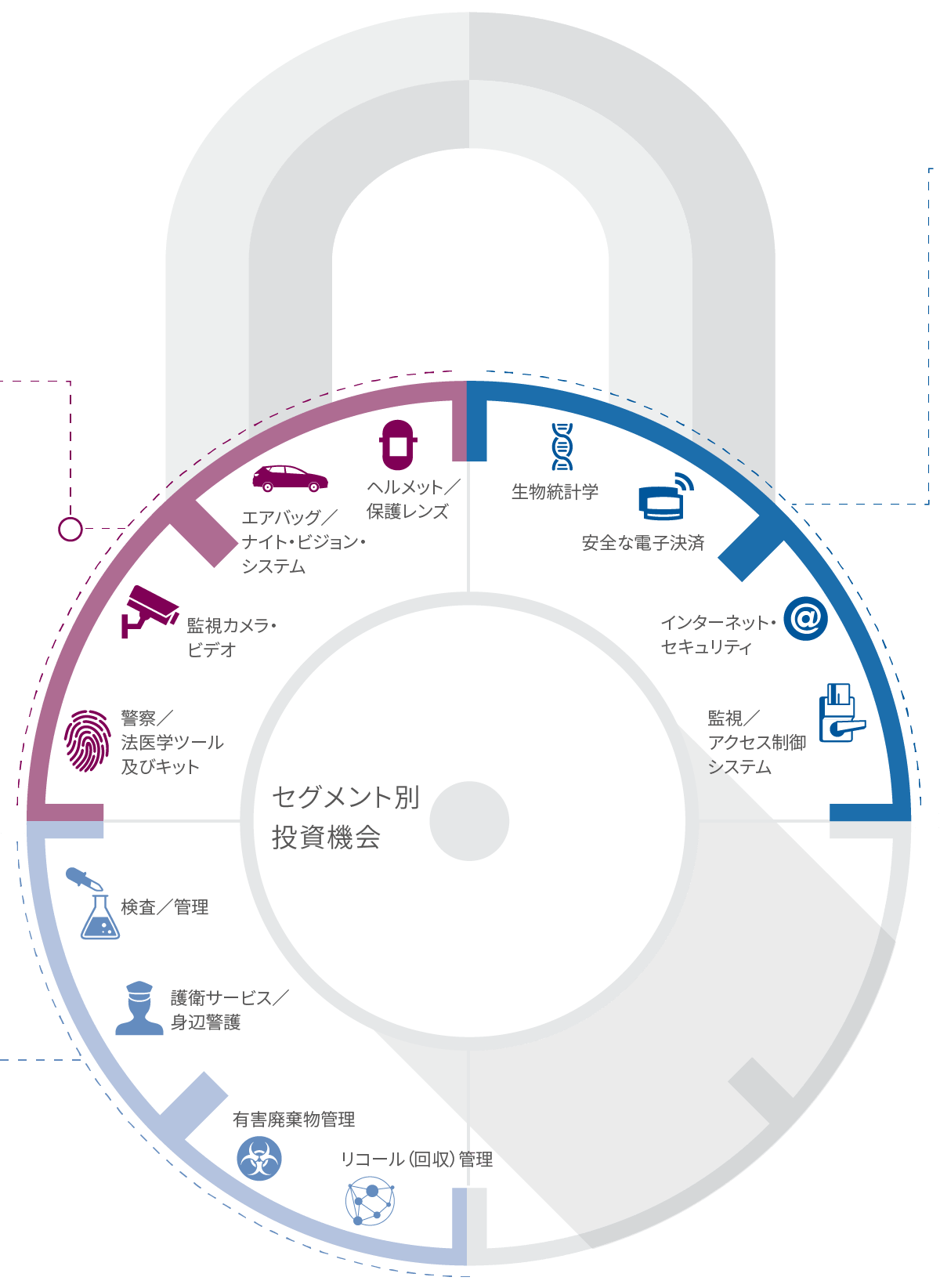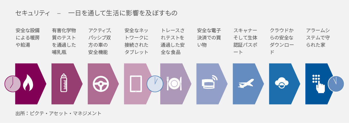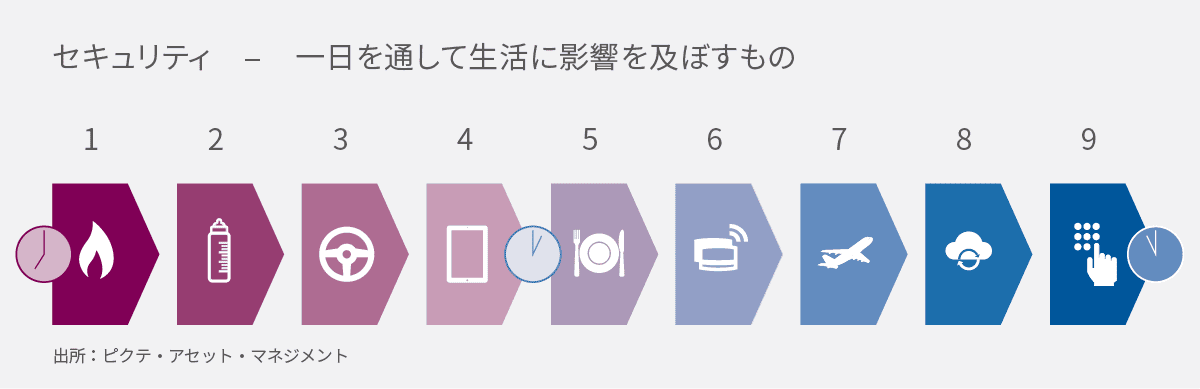 セキュリティは、世界中の政府、企業、そして個人にとってもますます重要になってきています。サイバー攻撃からの防御や重要なインフラの保護から食品の安全性や個人の安全保障まで、あらゆるセキュリティ関連の課題に取り組む企業は魅力的で長期に渡る投資機会を提供します。