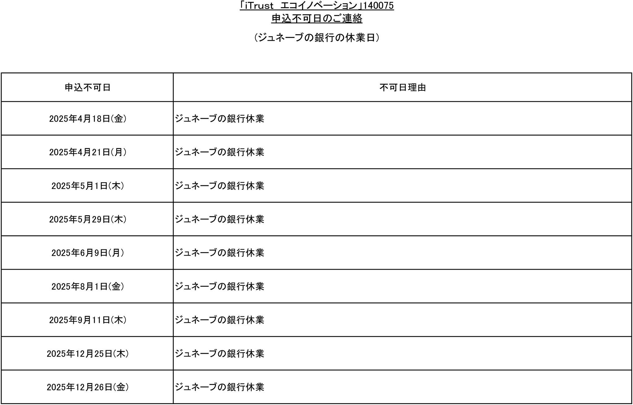 タイトル 「iTrust エコイノベーション」 信託財産留保額廃止のお知らせ タグ