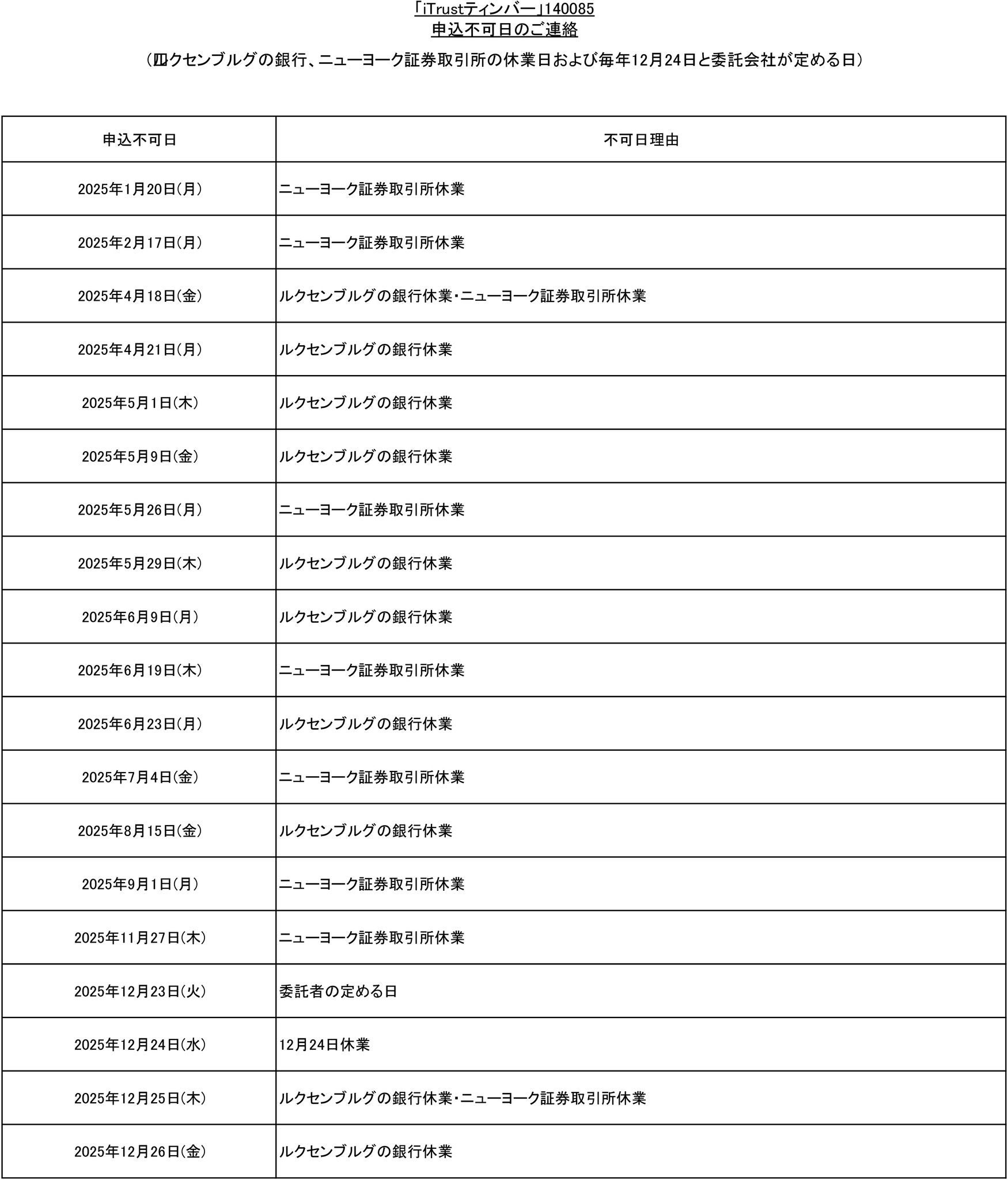 タイトル 弊社ファンドの購入および換金申込みの受付け中止のお知らせ タグ