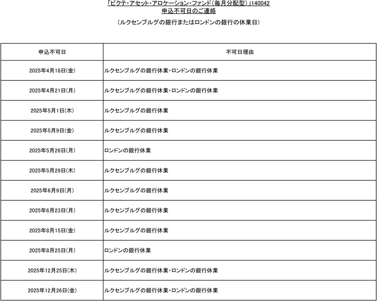 タイトル 弊社ファンドの購入および換金申込みの受付け中止のお知らせ タグ