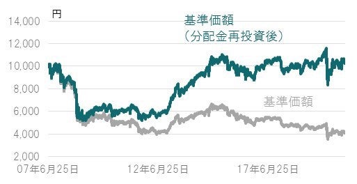 ※基準価額は信託報酬等控除後です。信託報酬率は「手続・手数料等」の「ファンドの費用」をご覧ください。基準価額(分配金再投資後)は、購入時手数料等を考慮せず、税引前分配金を再投資した場合の評価額を表します。