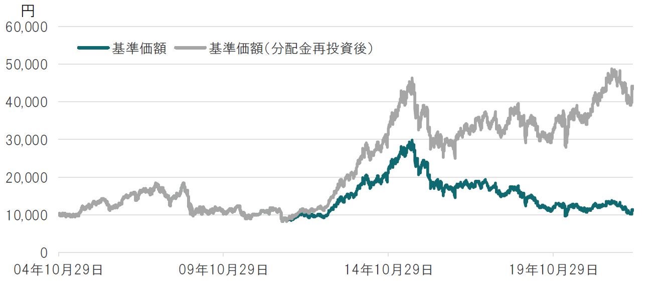 ※基準価額は信託報酬等控除後です。基準価額(分配金再投資後)は、購入時手数料等を考慮せず、税引前分配金を再投資した場合の評価額を表します。※基準価額は1万口あたりで表示しています。