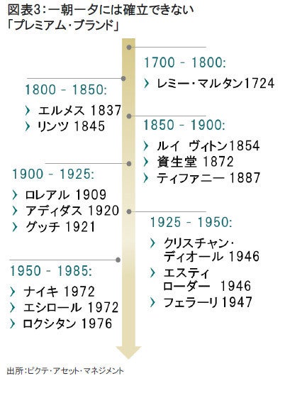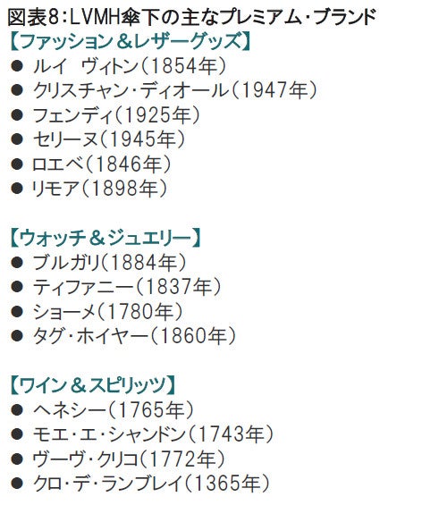 傘下のプレミアム・ブランドをみると、長い歴史を誇るブランドがずらりとそろっています。長きにわたってブランドを維持してく過程においては、顧客から熱烈な支持を受け続ける、「羨望の的」となる商品を提供し続けるための様々なノウハウ(ブランド戦略、価格戦略、コスト管理、オペレーション管理等)を有しています。