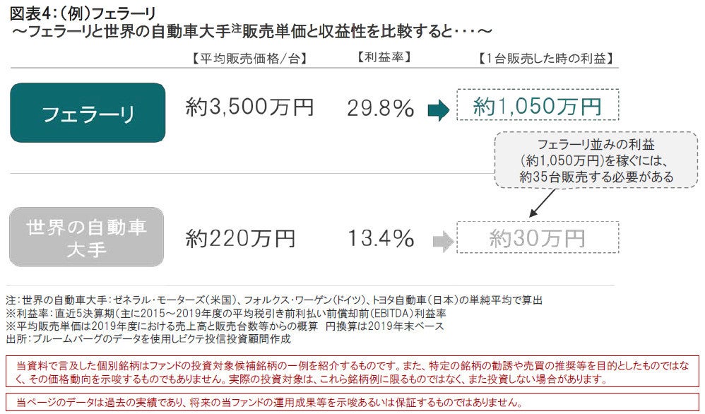 代表的な例として、高級スポーツカー専業のフェラーリは、これまでも業界他社に比べて高価格・高収益性を示してきたが、コロナ禍でもこうした強みは変わることがなく、相対的に高水準の利益率を維持しています。