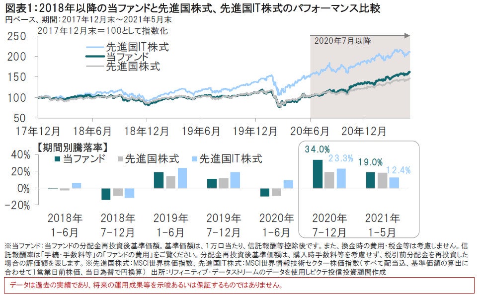 しかし、一方で、景気回復にともない物価上昇圧力が高まり、世界的なインフレ懸念が浮上していることから、金利先高観も高まっています。こうした足元の市場環境下、株式市場では特にバリュエーション(投資価値評価)水準に過熱感のある、情報技術(IT)などのハイテク関連銘柄の株価が大きく調整する局面もみられます。